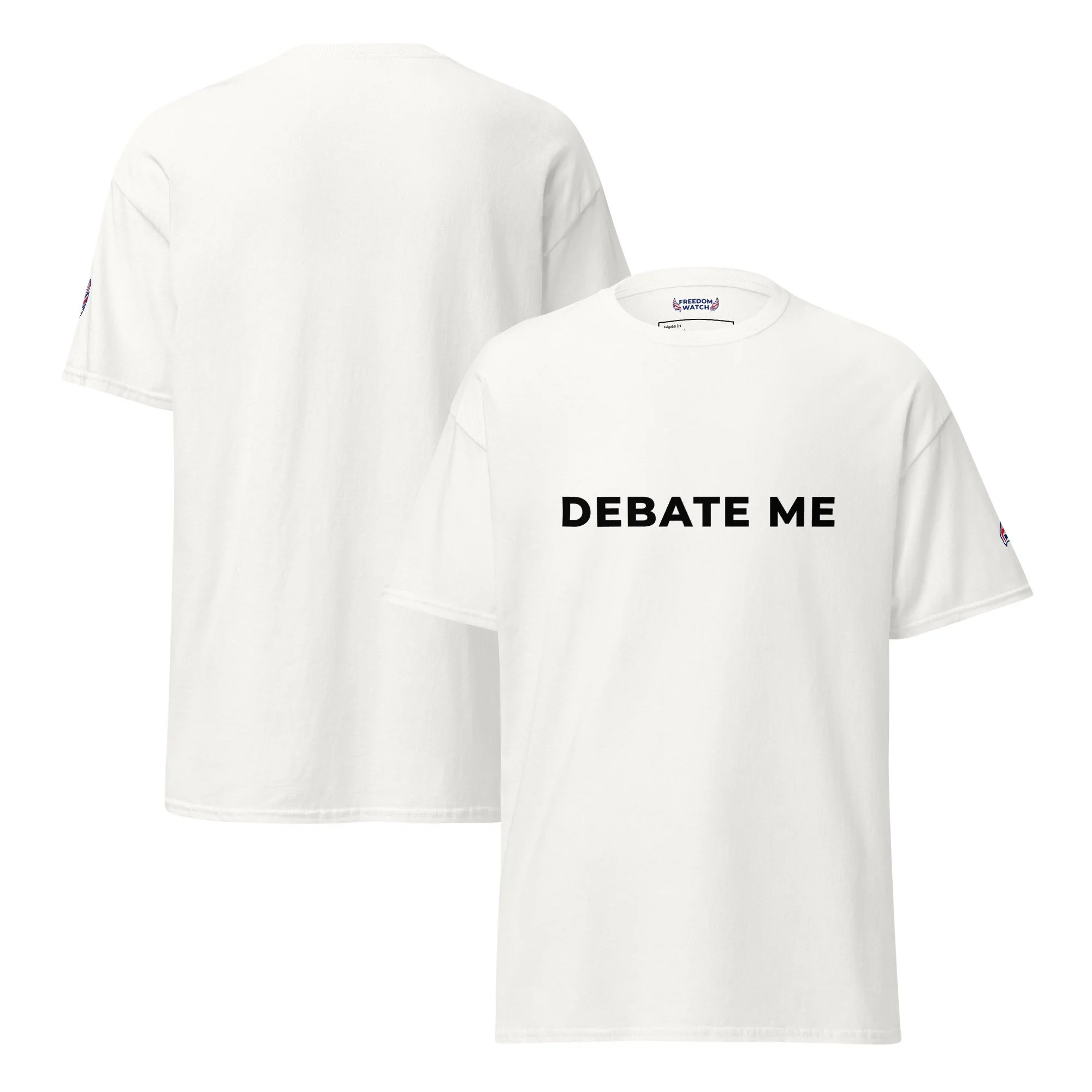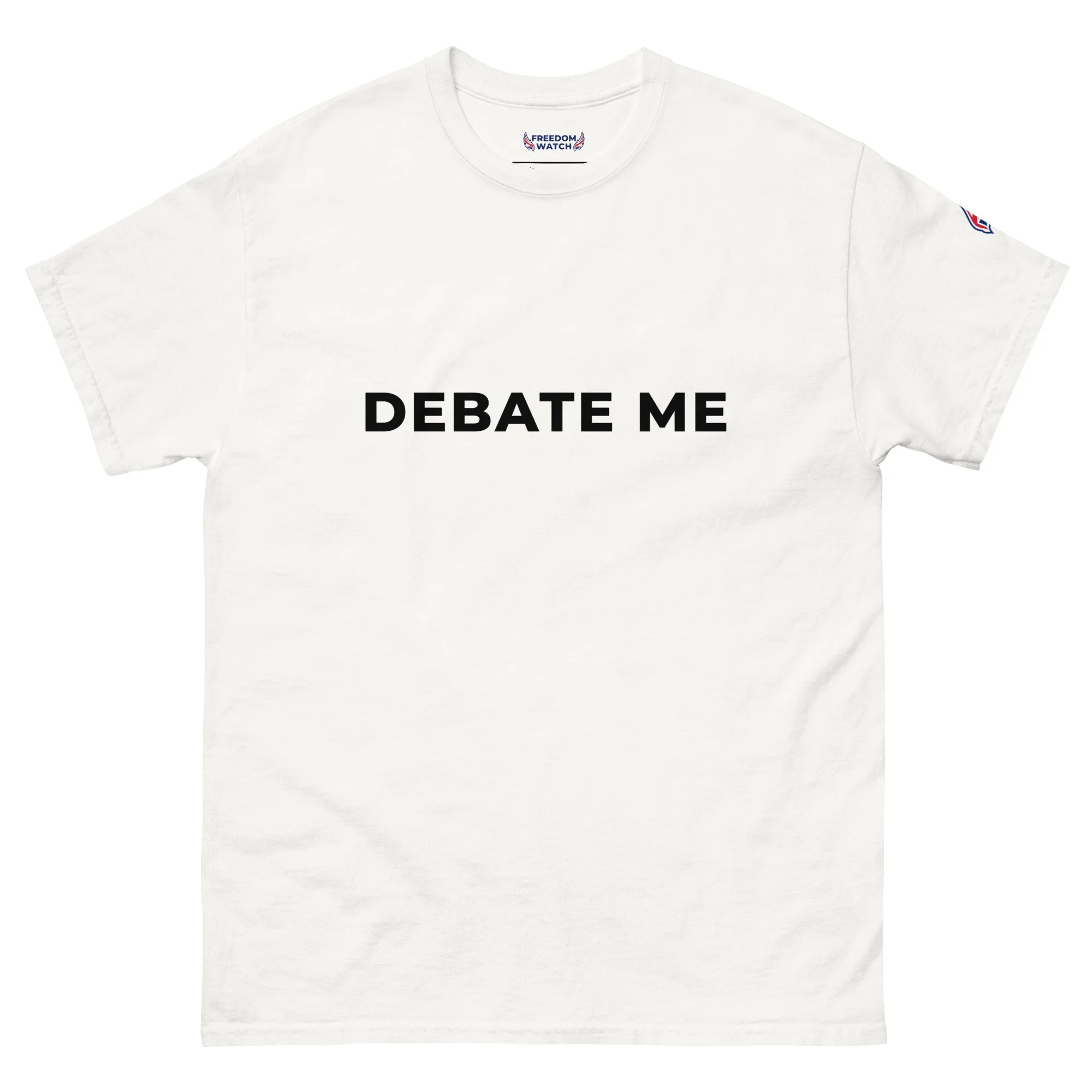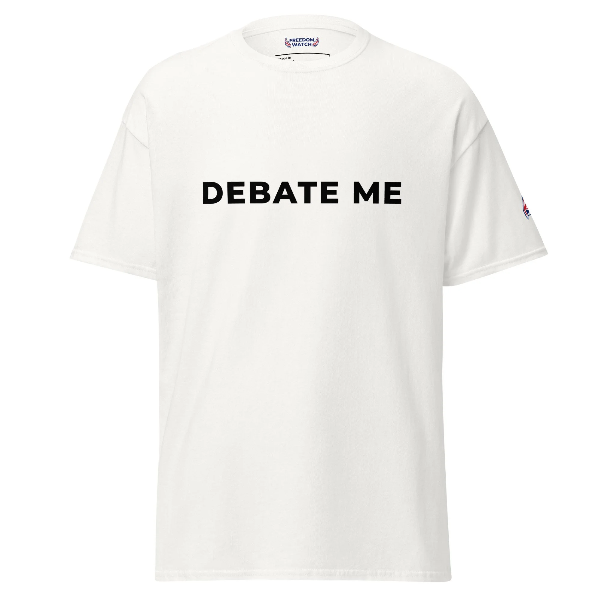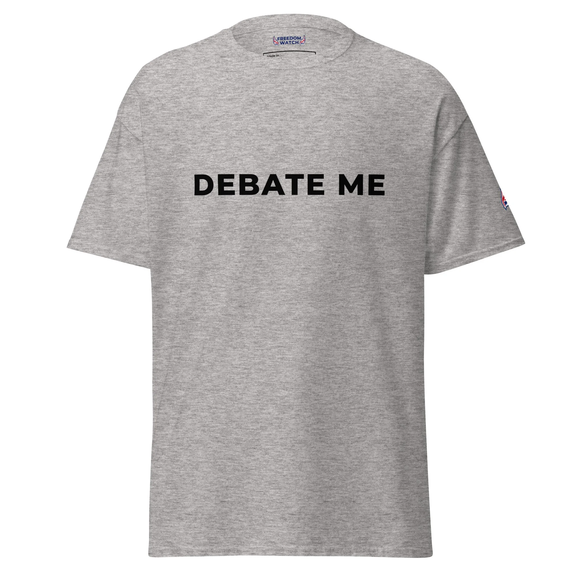 Simple, sharp, and designed to spark conversation — the Debate Me Freedom Watch GB Premium T-Shirt is made for those who stand for free speech, open discussion, and confident expression. Featuring bold typography and a clean layout, this design turns a simple phrase into a powerful statement.