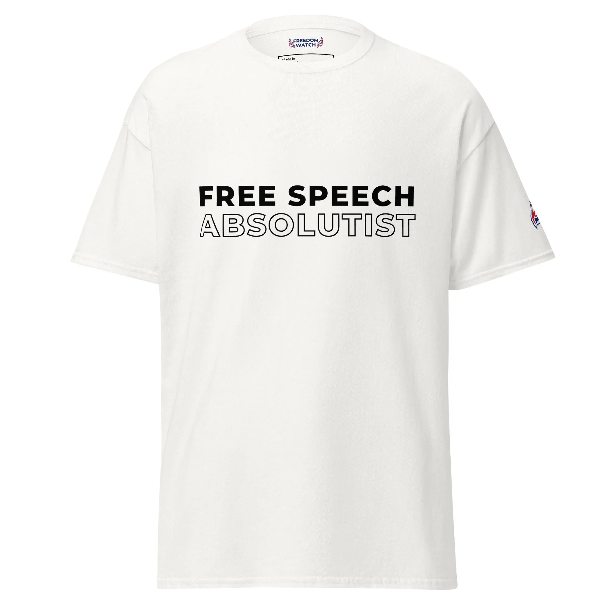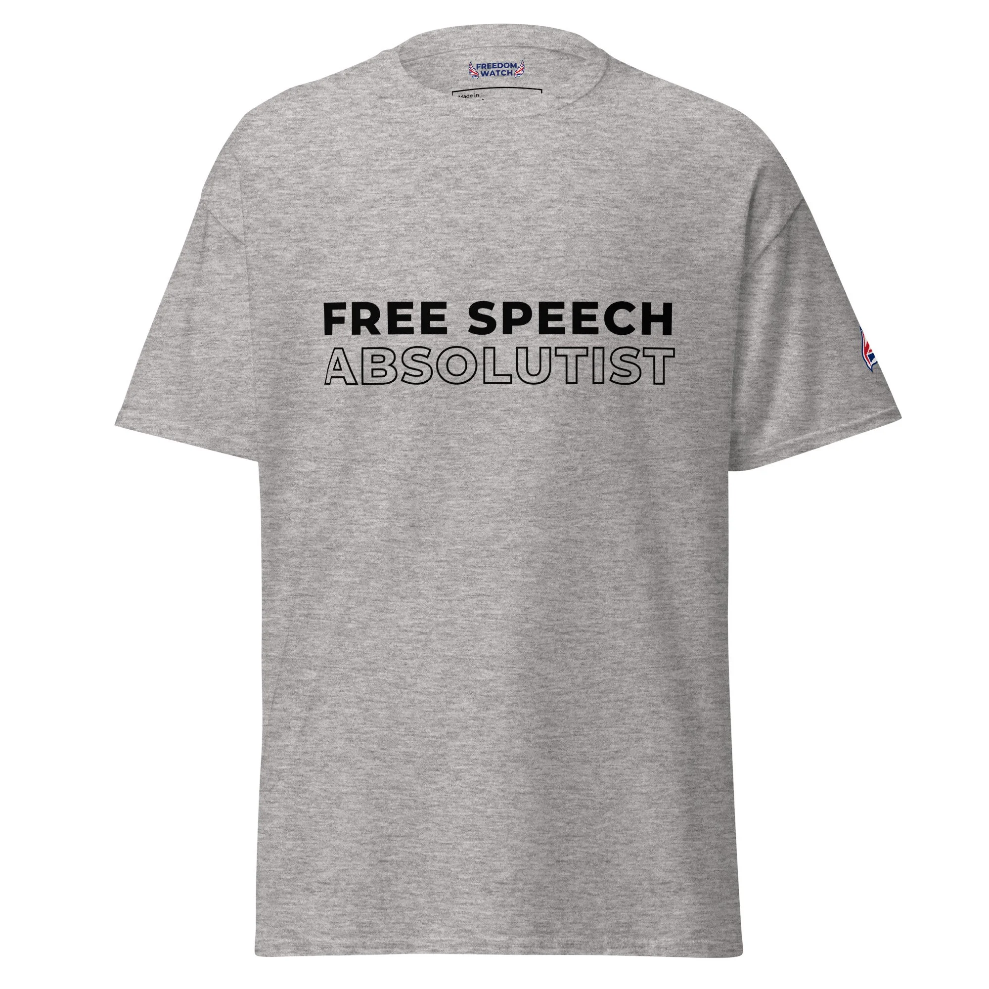Clean, bold, and impossible to ignore — the Free Speech Absolutist Freedom Watch GB Premium T-Shirt is designed for those who value open discussion, honest debate, and the right to speak freely. Featuring strong typography and a minimalist layout, this design turns a clear principle into a powerful statement.