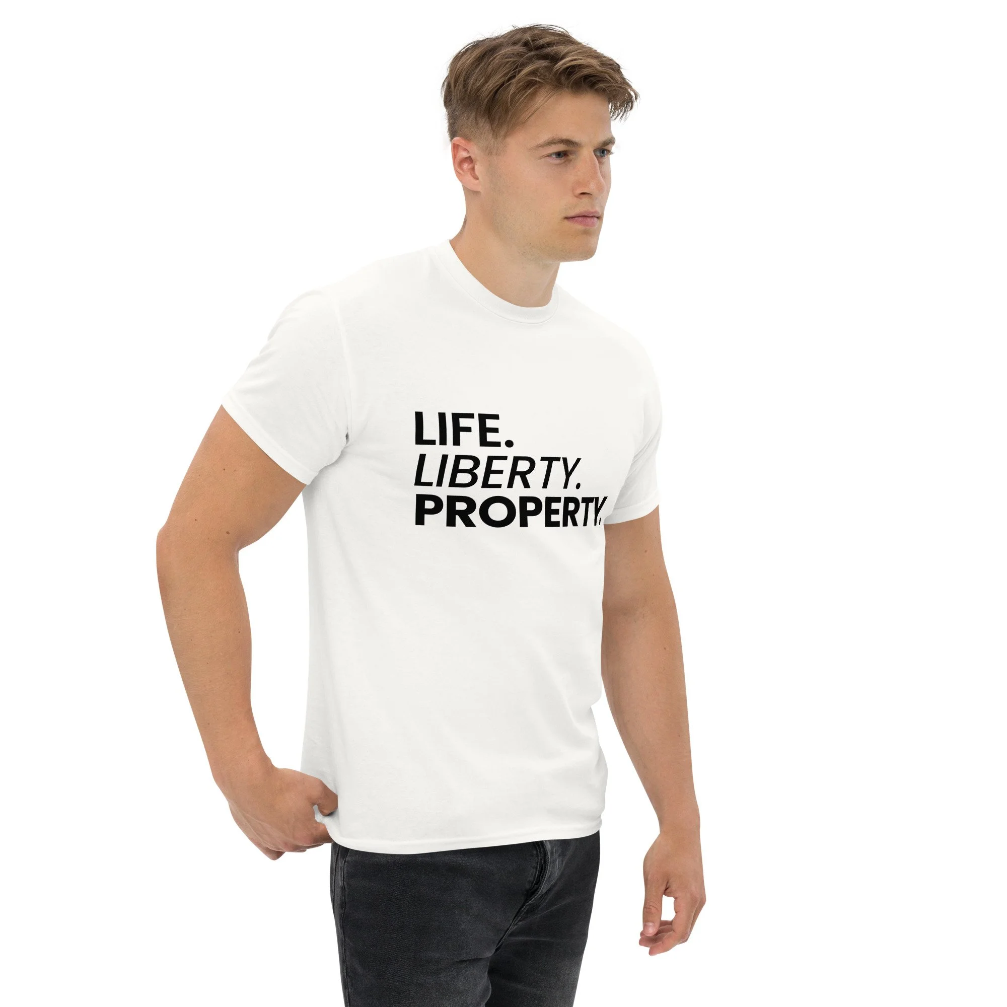 Clean, timeless, and made to stand for something — the Life. Liberty. Property. Freedom Watch GB Premium T-Shirt reflects the values of freedom, individual rights, and civic responsibility. Featuring bold typography and a minimalist design, this piece combines strong meaning with everyday style.